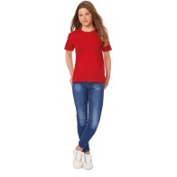 145 g/m² 100% coton pré-rétréci et ring-spun Col rond à bord côte avec élasthanne Bande de propreté au cou Construction tubulaire Lavable jusqu`à 40°C Coupe classique. Modèle Femme : BC156